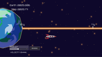 • When you stop the spaceship, the observed year of Earth at that distance is shown.