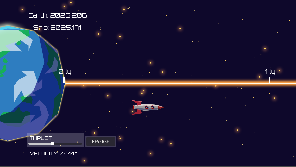 • Use the "THRUST" slider to change the spaceship’s speed.
